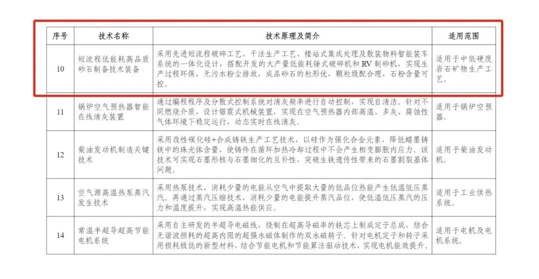 2023年,入選工信部《國(guó)家鼓勵(lì)發(fā)展的重大環(huán)保技術(shù)裝備目錄》,成為砂石裝備領(lǐng)域少數(shù)獲此殊榮的技術(shù)之一。