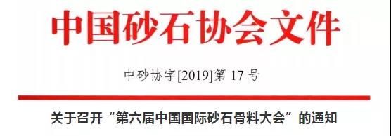為加強各國砂石骨料行業(yè)的交流與合作,助力優(yōu)化全球砂石資源配置,推動砂石骨料工業(yè)的轉(zhuǎn)型升級、綠色發(fā)展和高質(zhì)量發(fā)展,發(fā)揮砂石骨料產(chǎn)業(yè)對全球經(jīng)濟的支撐和拉動作用,共同打造全球砂石骨料工業(yè)的命運共同體,經(jīng)中國砂石協(xié)會與多國相關(guān)協(xié)會和組織共同商議,定于2019年12月9~12日在江蘇無錫召開“第六屆中國國際砂石骨料大會”,同期舉辦“第四屆中國國際建筑固廢資源化利用大會”、“第五屆全國砂石骨料大賽”、“第八屆全國砂石行業(yè)書畫攝影展”、 “中國砂石協(xié)會第七屆十次常務(wù)理事會” 、“中國砂石協(xié)會2019年年會”等活動。