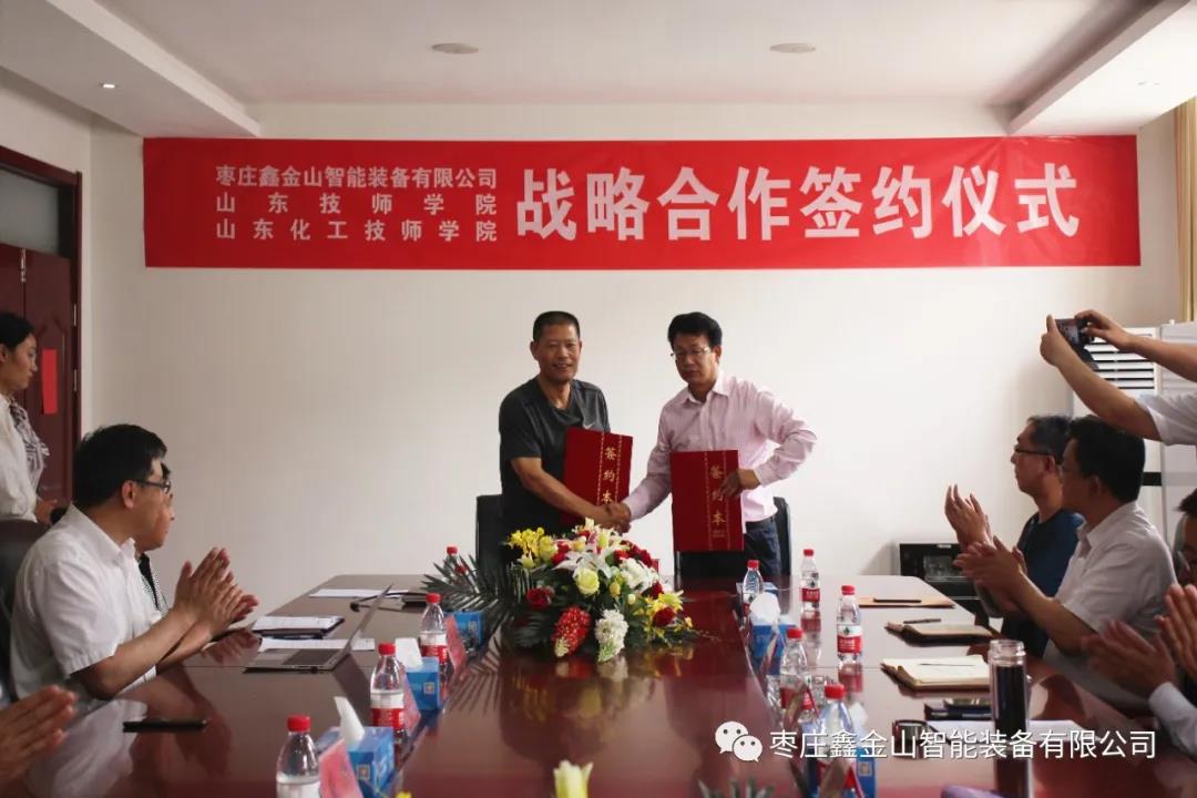 導(dǎo)讀:為進(jìn)一步強(qiáng)化校企合作,推動(dòng)產(chǎn)學(xué)研深度融合。5月25日,棗莊鑫金山智能裝備有限公司與山東技師學(xué)院、山東化工技師學(xué)院戰(zhàn)略合作簽約儀式在鑫金山公司總部隆重舉行。
